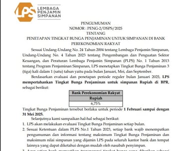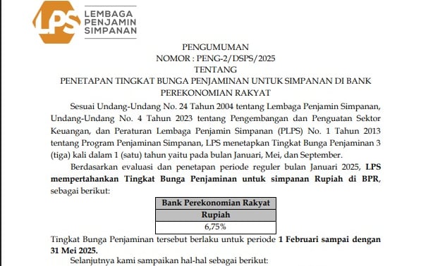 Suku Bunga LPS 1 Februari sd 31 Mei 2025